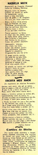 Recorte de Guitarra de Portugal de 1939 que contiene dos letras de fado. La primera, "Os Meus Quicos", fue escrita para el repertorio de Berta Cardoso y firmada por João Linhares Barbosa. La segunda, "Romaria", fue compuesta por A. Victor Machado para el repertorio de Maria do Carmo Torres.05 janeiro 2010